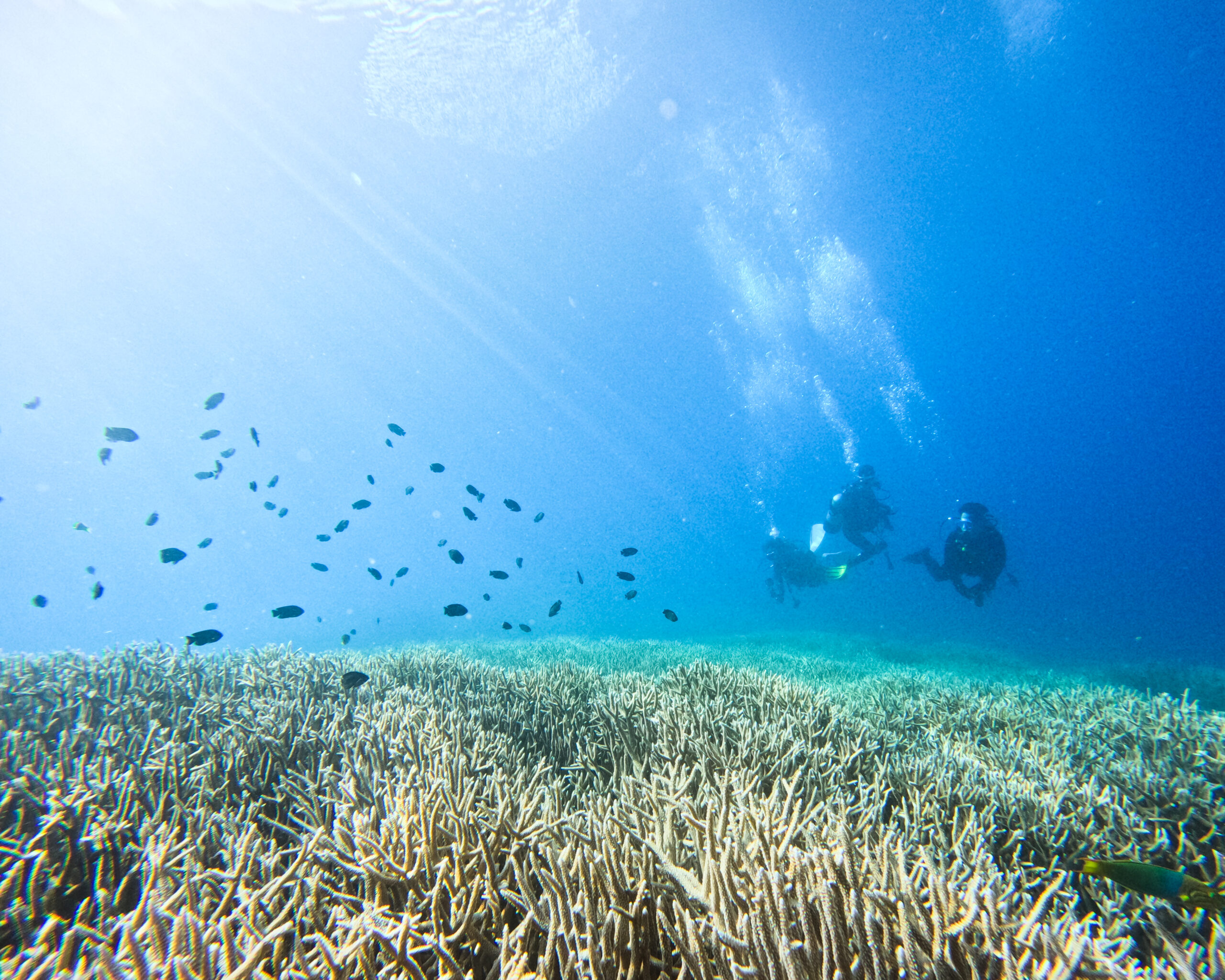 西面は凪の日が続く、ダイビングには最適な便となりました。沈船のポイントをはじめ、砂地のドリフトポイントにもチャレンジ。根魚が多く見られるポイントにもいけました。最近はゴープロやオズモアクションをお持ちの方も多く見られます。その場合できる限り、ワイド思考で広い視界を楽しめるポイントを選びます。ムレハタタテダイの群がりは撮影も楽しいです。群れの動きにはパターンがあるので、ブリーフィングでお伝えしており、まとまった瞬間がシャッターチャンスです。そのように、いろいろな撮影方法が表現できればいいなと思っています。