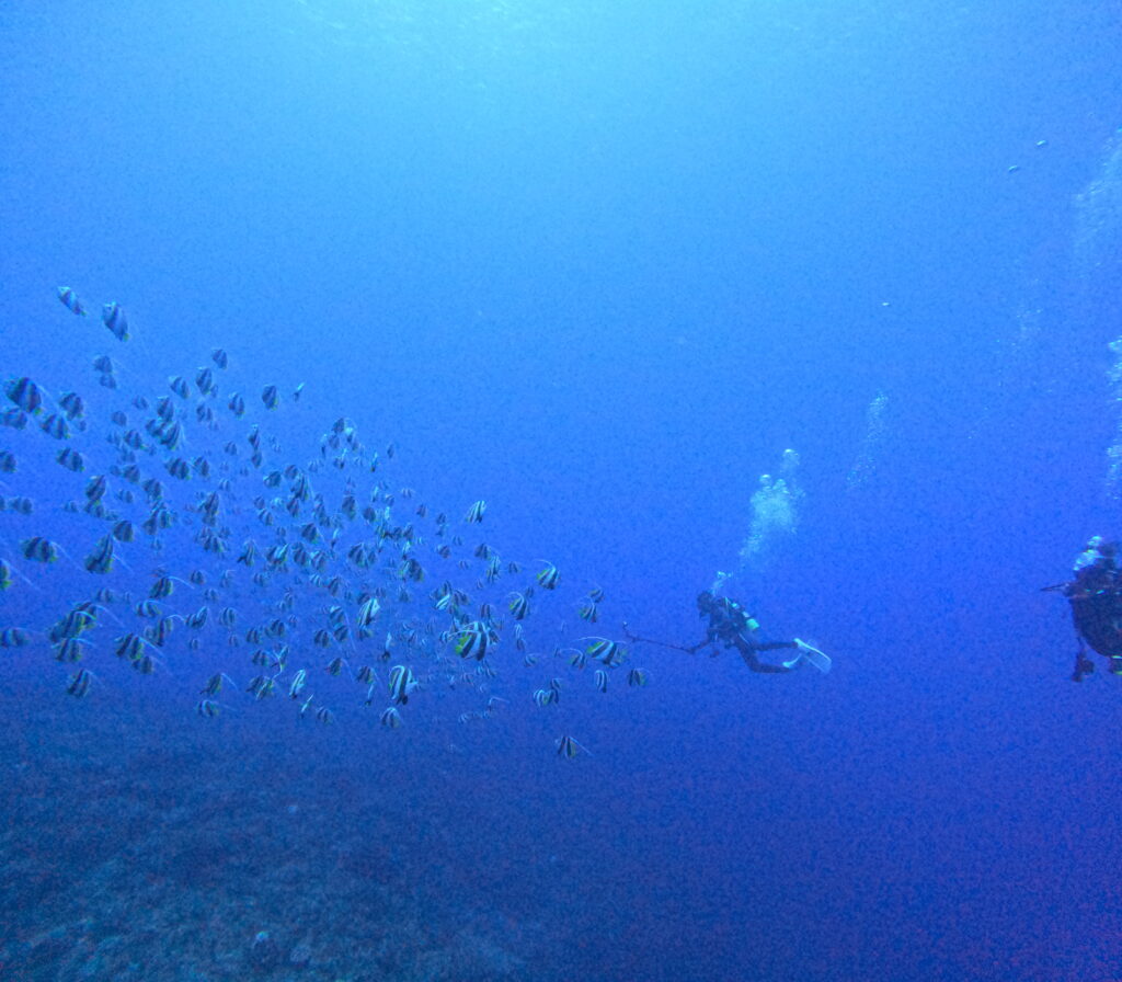 ツバメウオ、ミカヅキツバメウオ、ユウゼン、アカイセエビ、カウケグチイットウダイ、スカシテンジクダイ、ベニゴンベ、メガネゴンベ、ハナミノカサゴ、ホワイトチップシャーク