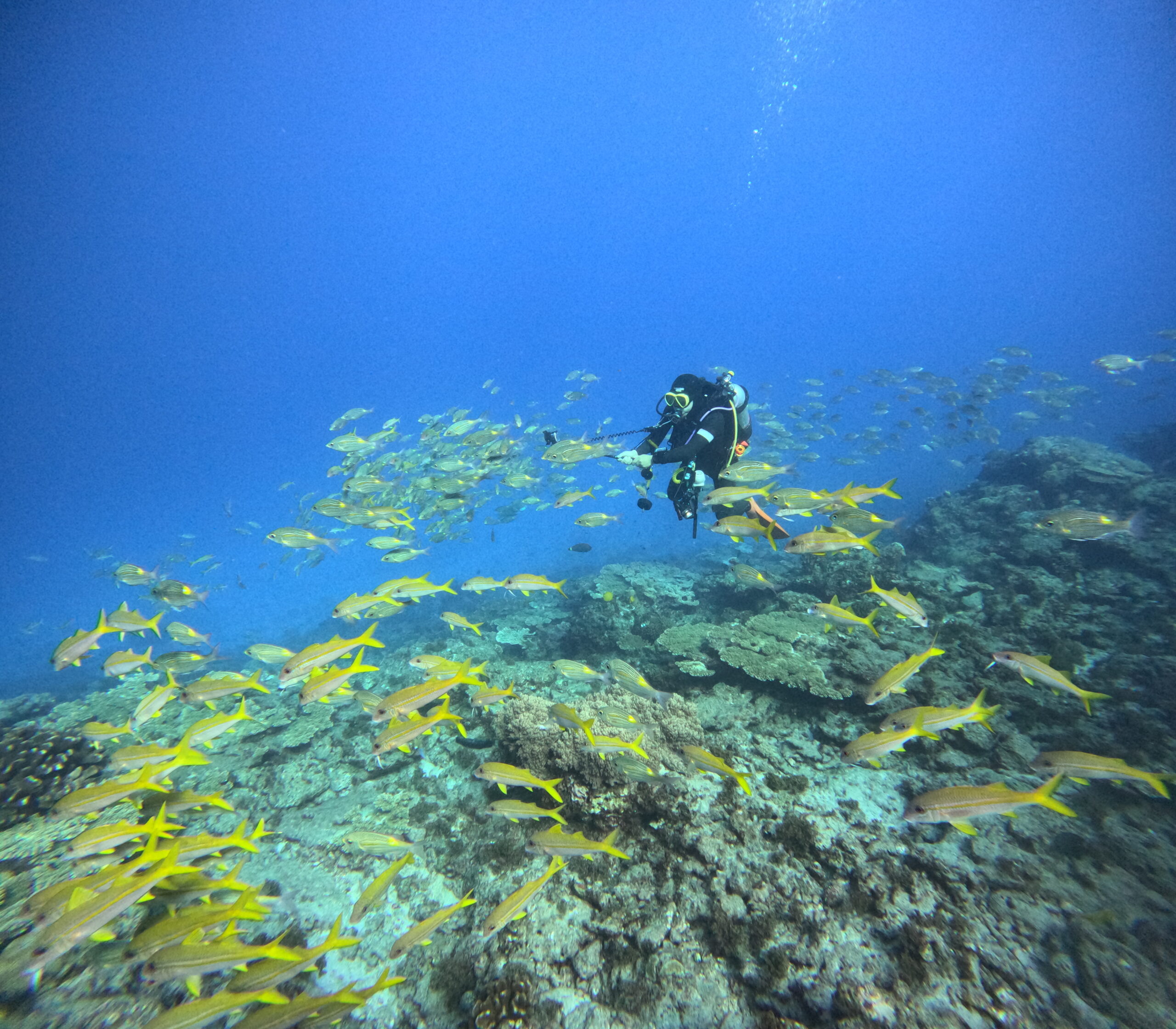 ホワイトチップシャーク、キイロハギ、ウケグチイットウダイ、アカヒメジ、アオウミガメ、アジアコショウダイ、ナンヨウブダイ、ノコギリダイ、ミナミイスズミ、キホシスズメダイ