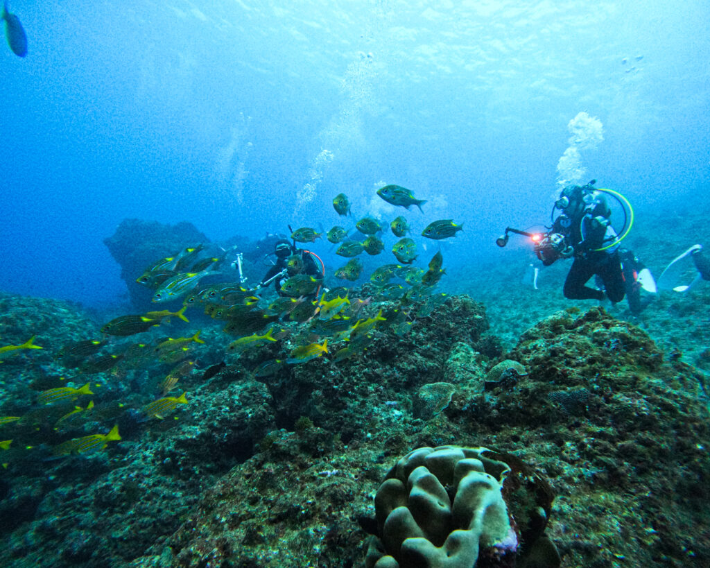 年末年始の便はダイビングサービス様が来られて、ボート上も毎日賑やかな日々が続きました。海況を心配していましたが、予報よりかは落ち着き、ボートダイビングメインで父島周辺を一周したりしながら、ポイントを巡ることが出来ました。水温が低下しだす頃の見どころはシロワニのシーズンです。今回は各地のシロワニポイントを巡りながらもポイントを選んでいきました。見つけられない事もあったのですが、後半では何頭か出会えることができました。(シロワニは1月〜3月ごろが最も見やすい時期です。水温の低下に合わせて、ダイバーが観察できる範囲の浅場に上がってくることが理由です。)他にはツバメウオやウメイロモドキが集まる風景なども楽しめました。他には、ナイトダイブやビーチダイブなども楽しみながら、新年の便が終わりました。ゲストの皆様は小笠原での年越しとなり、良い1年のスタートとなれば嬉しいです。ありがとうございました!