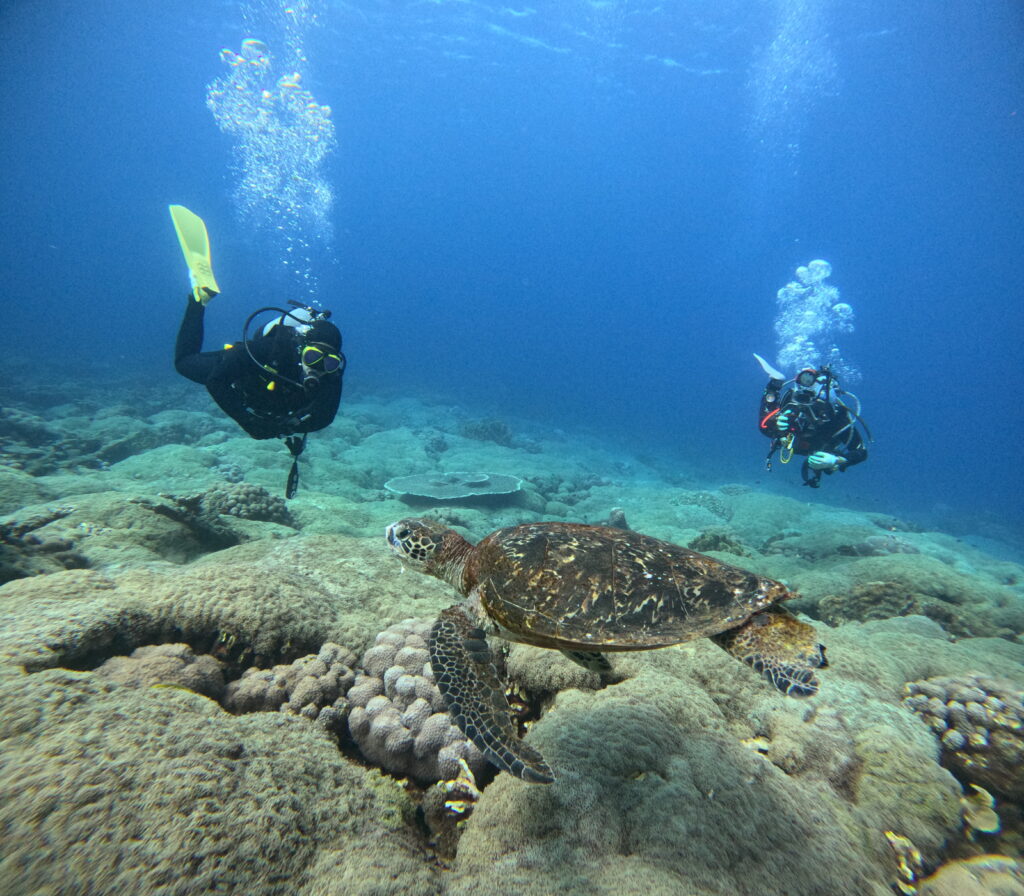 ポイント/①中沈 ヒレナガカンパチ、カスミアジ、タテジマキンチャクダイ、ホウセキキントキ、キホシスズメダイ、コビトスズメダイ、オナガスズメダイ、ウメイロモドキ、タカサゴ、ノコギリダイ、アオウミガメ