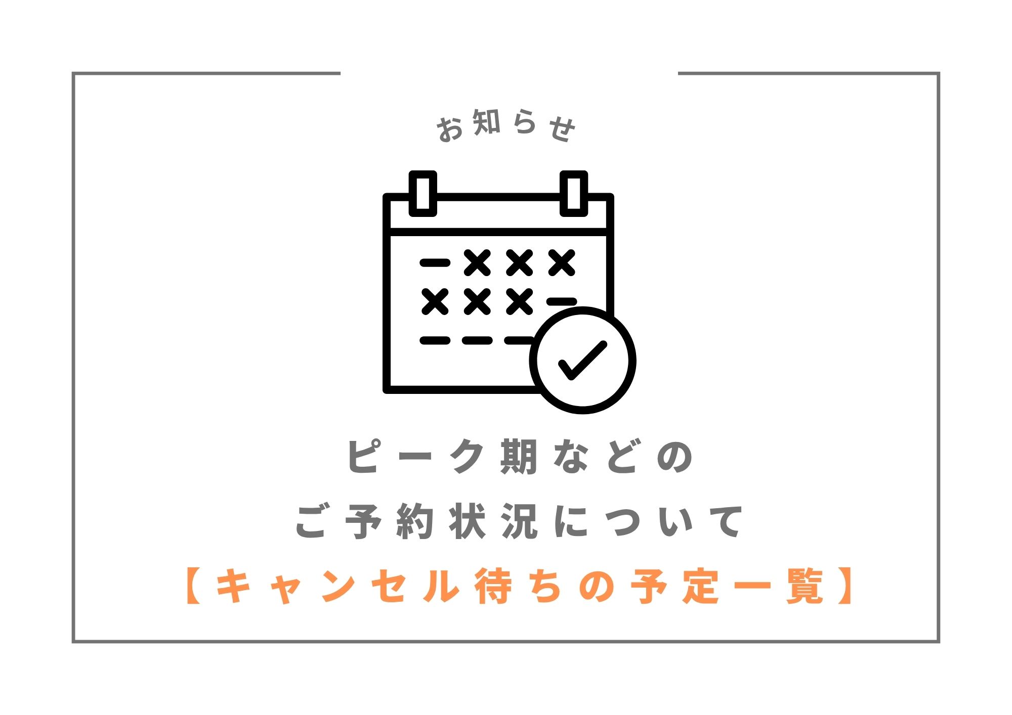 現段階で、下記日程はキャンセル待ちとさせていただいておりますので、あらかじめご了承下さいませ。